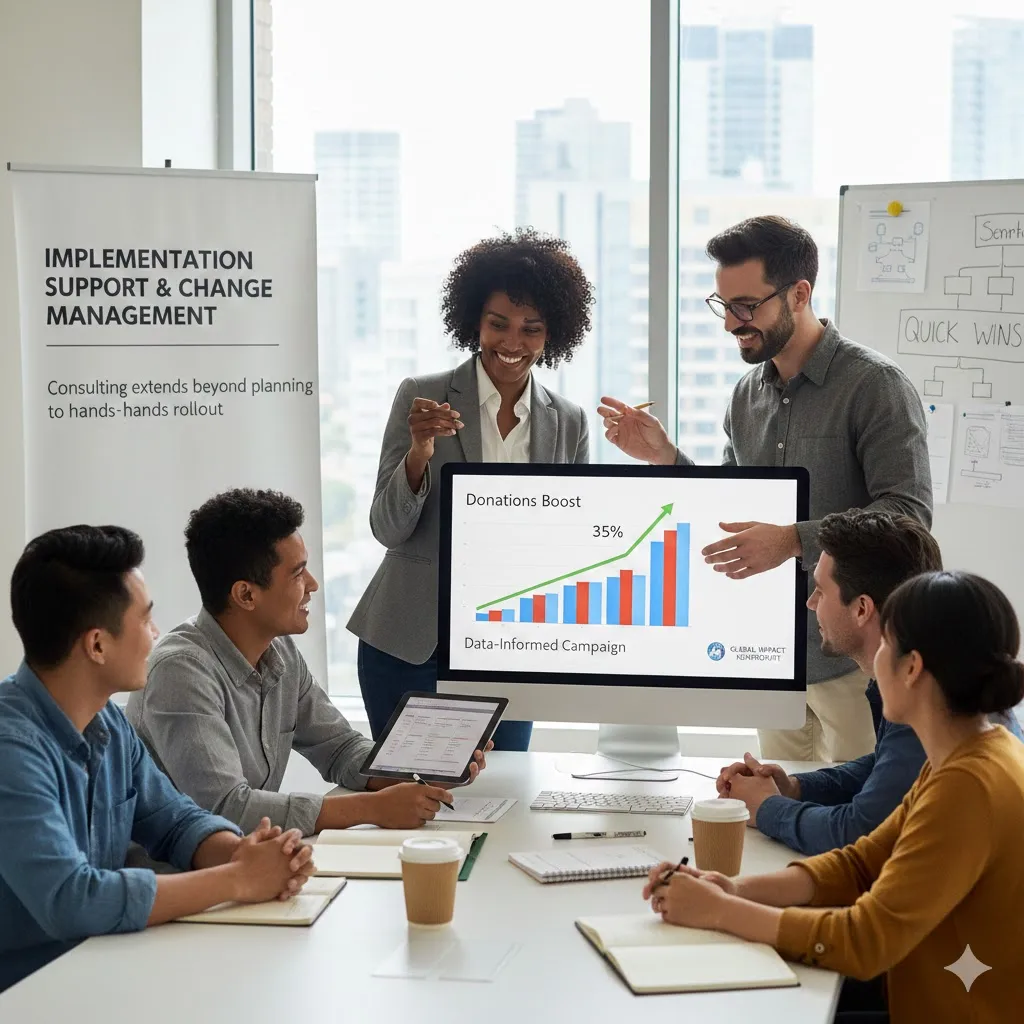 Consulting extends beyond planning to hands-on rollout. Experts train teams, integrate tools, and monitor early execution for quick wins.