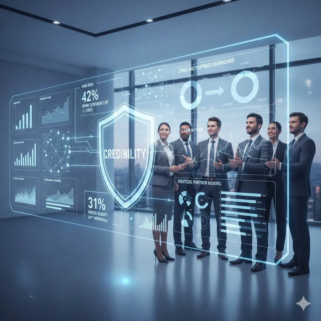 Present business cases with pilot data: “10% budget increase yields 28% credibility lift.” Align with KPIs like revenue attribution.