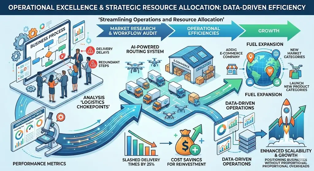 Custom market research solutions inform operational efficiencies by pinpointing bottlenecks and optimal resource use. Workflow audits and performance metrics guide reallocations for maximum impact.